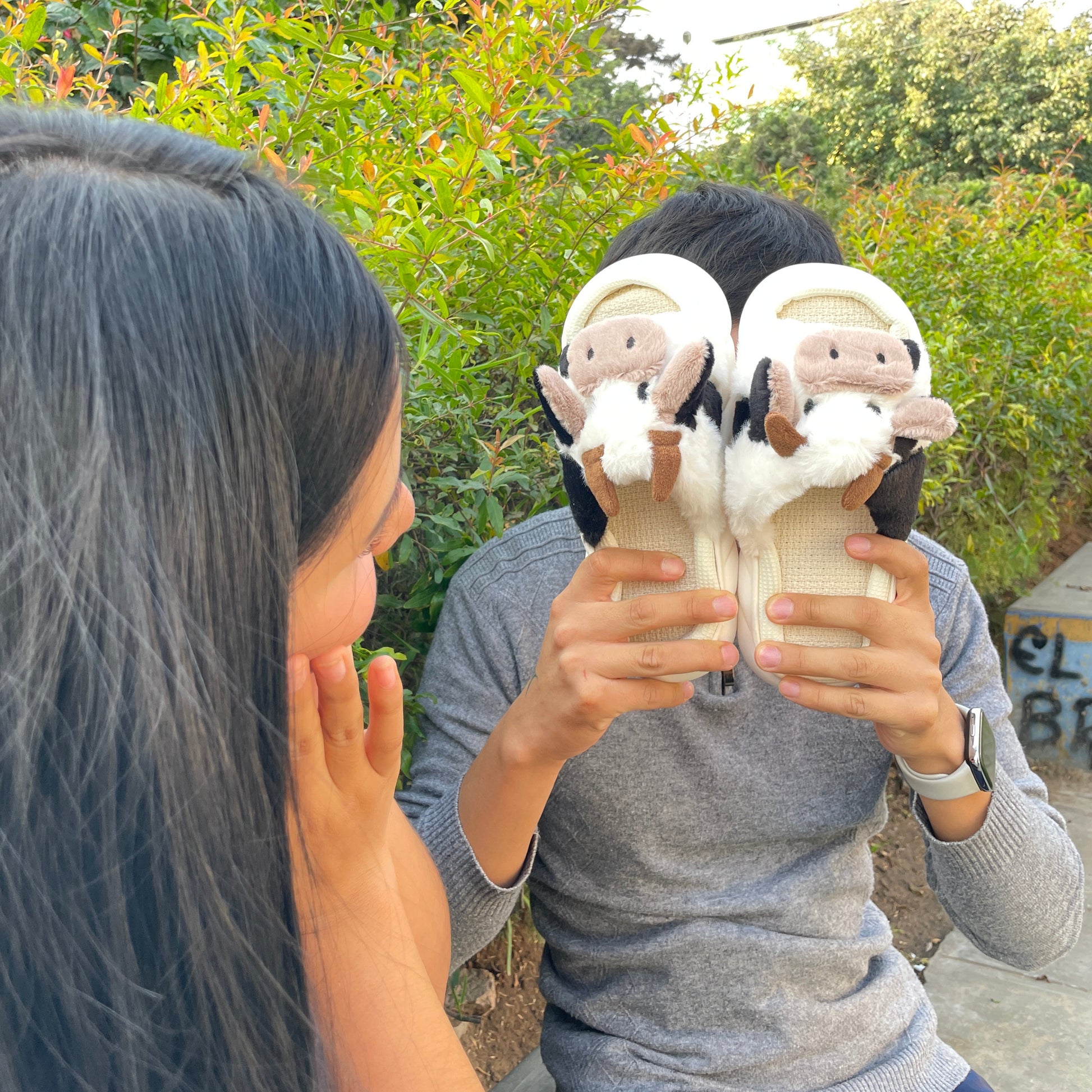 Sorprende a tu persona especial con el regalo más adorable: un par de pantuflas de vaquita súper suaves + medias a juego, perfectas para días de descanso, maratones de pelis y abrazos eternos. 🥰